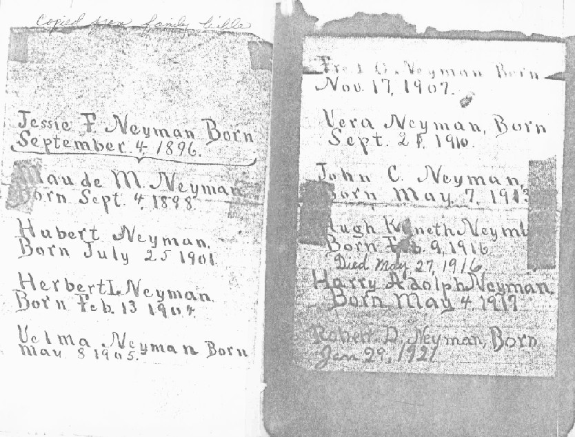 Contributed by Joyce L. Neyman. Information on first marriage from Phil Neyman